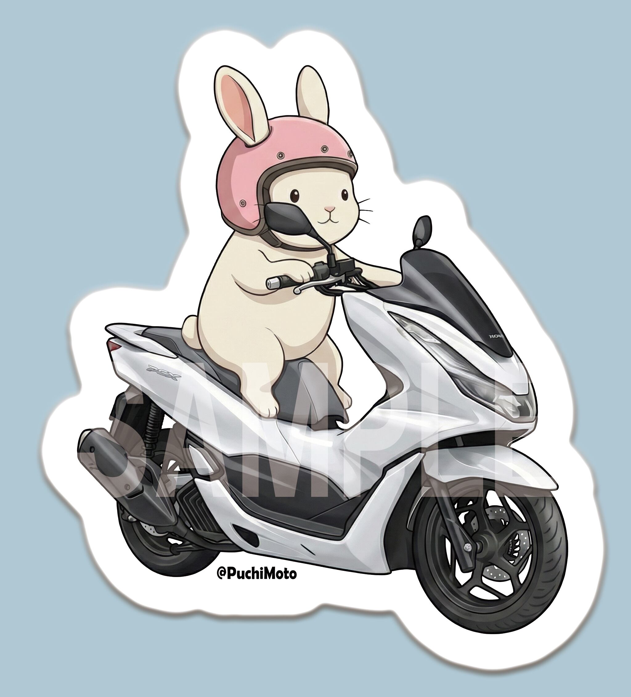 PuchiMotoステッカーS(PCX & 白うさぎ)